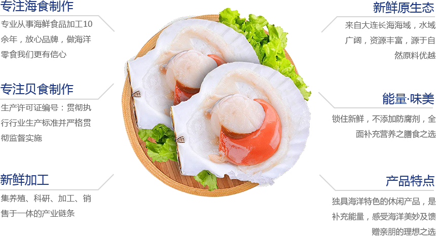 我們的海鮮零食均選至大連長海的新鮮原料,采用標(biāo)準(zhǔn)的技術(shù)設(shè)備加工而成,開袋即食,不含防腐劑,鮮嫩柔軟,鮮美多汁,真正海洋的味道。